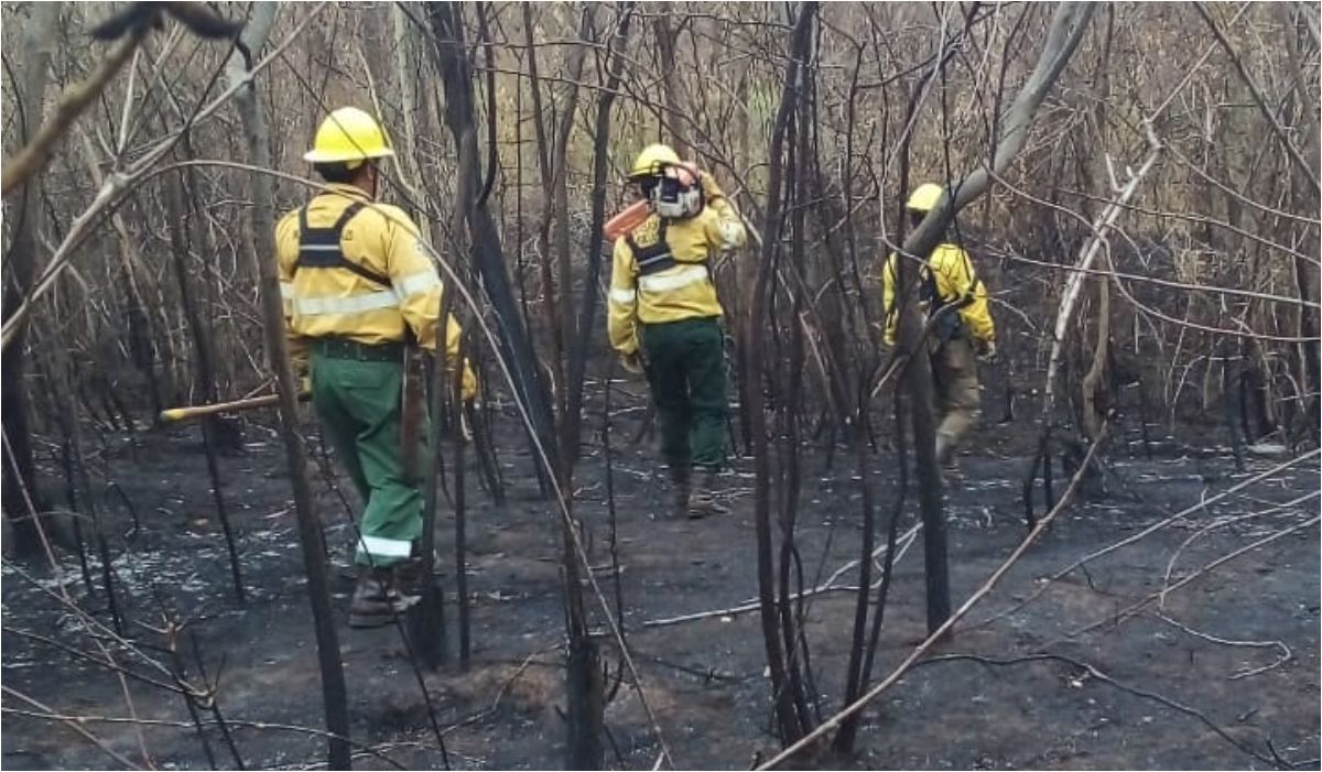 Brigadistas de la Dirección de Incendios de la Vegetación y Emergencias Ambientales continúan trabajando en el incendio que se encuentra controlado, en Finca "La Graña" de Vinalito Depto. Santa Bárbara.