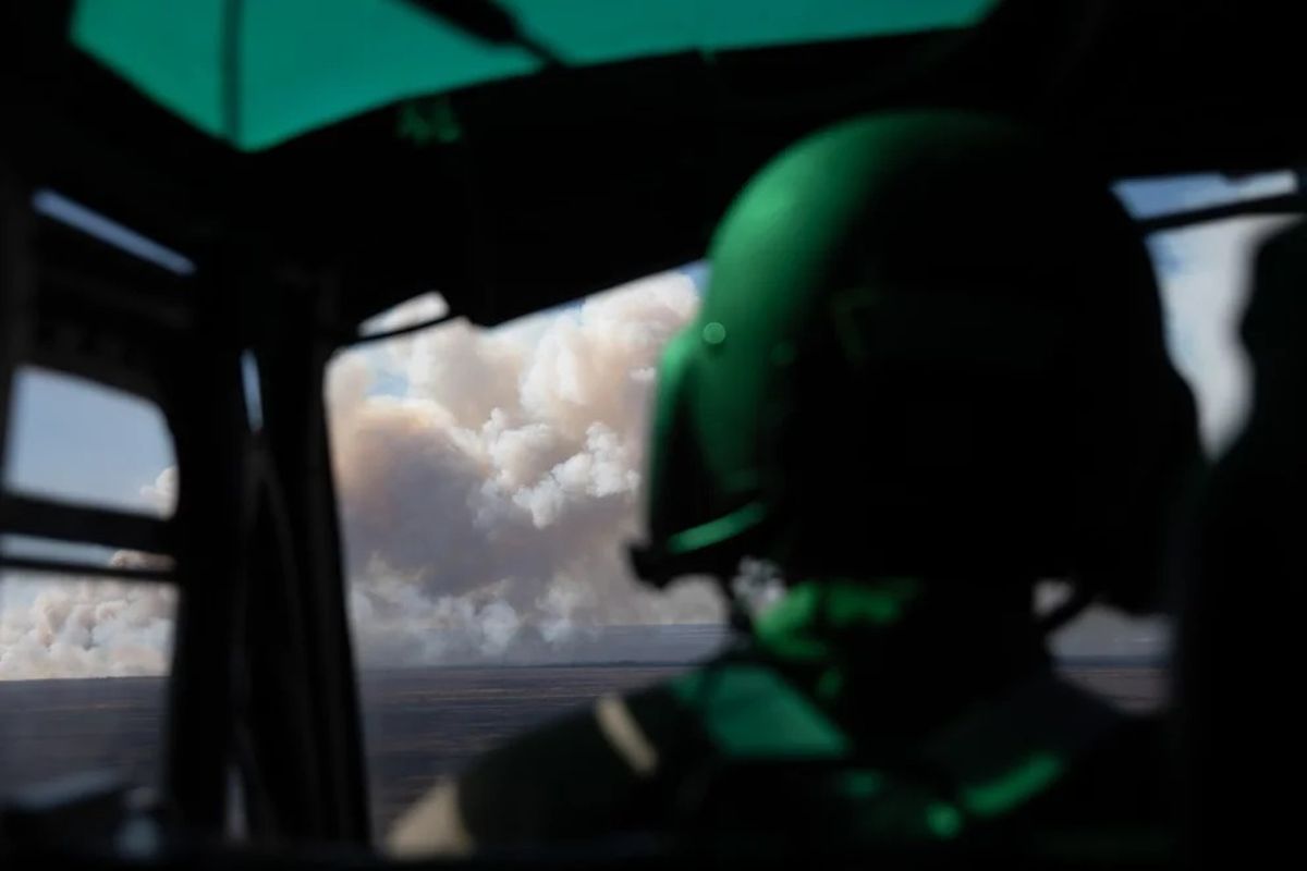 “Esto es como una guerra, solo que el enemigo es el fuego”. El coronel del Ejército argentino Héctor Tornero, a cargo del Comando Operativo instalado aquí en Alvear, mira alrededor y observa el campamento montado sobre el pasto seco, los camiones cisterna, las antenas meteorológicas, los brigadistas que bajan de los helicópteros con las caras negras por el hollín.
