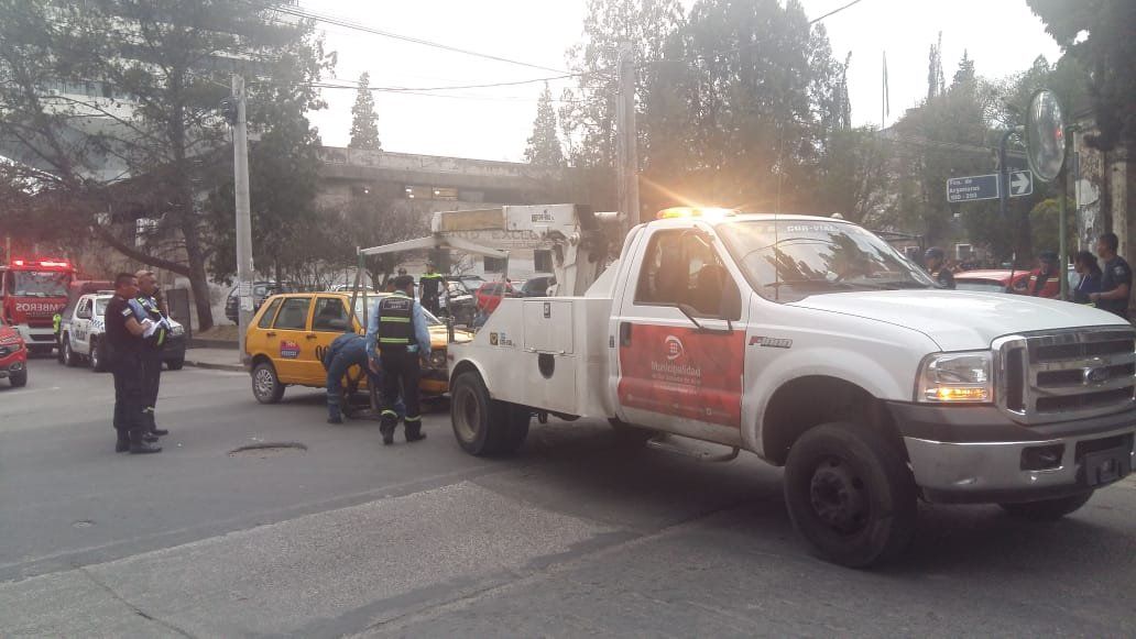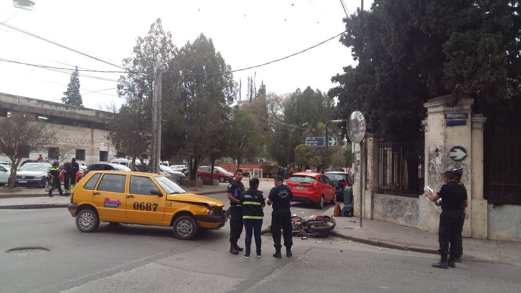 Por los datos aportados por personal Policía el taxi habría impactado al motovehículo ocasionando la caída de las dos personas que se trasladaban en el mismo.