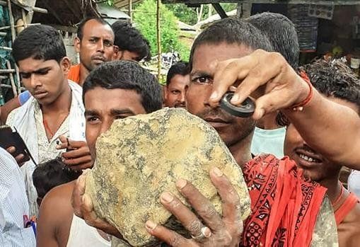 En un cráter de un metro de profundidad, los vecinos de la aldea de Koriyahi encontraron una piedra de color marrón que pesaba cerca de 15 kilos.