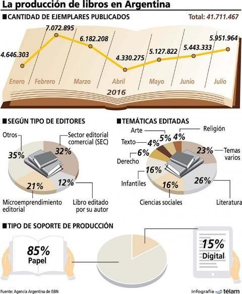 En el primer informe semestral de la entidad también se resaltó que, a la hora de las temáticas editas en 2016, la literatura cayó un 4 % en relación la producción del año pasado, mientras que aumentó la edición de libros referidos a ciencias sociales y humanas, como así también los destinados a niños y jóvenes.