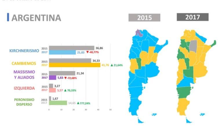 La conclusión es que han crecido por separarse. El informe también arroja el descenso del massimo en las últimas elecciones y denota un importante crecimiento de Cambiemos en todas las provincias.