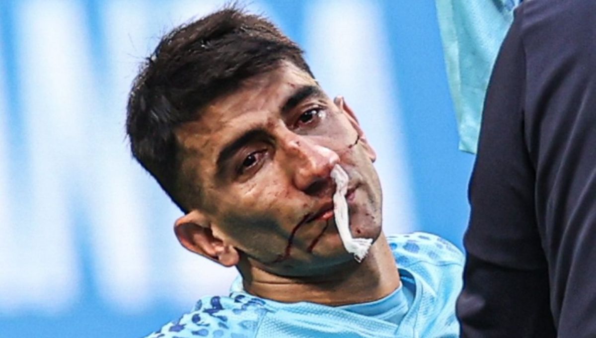 Beiranvand salió a cortar un centro desde la derecha pero, sin observarlo, se llevó puesto de frente a su compañero Majid Hosseini. Inmediatamente quedó tendido en el césped y, si bien no perdió el conocimiento, el resultado del golpe se pudo ver inmediatamente en su nariz, que se llevó la peor parte.