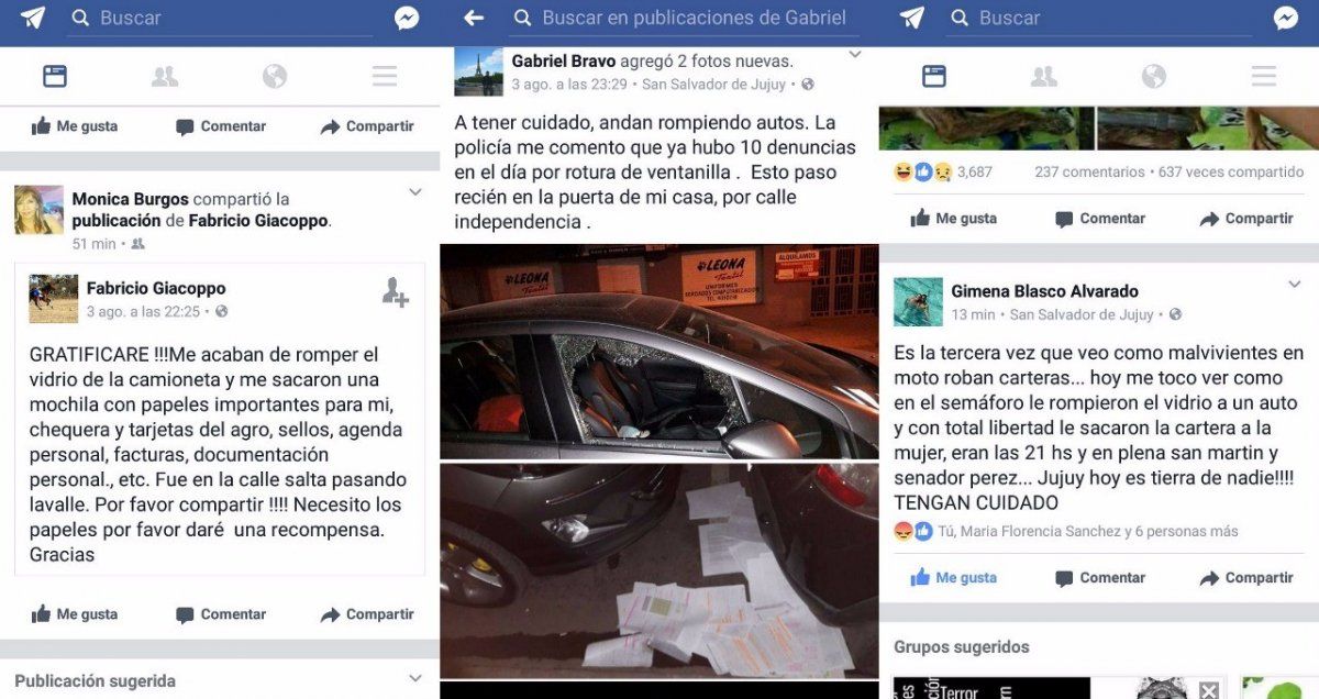 Mensajes de preocupación por los casos de inseguridad vividos en las últimas horas en la capital jujeña fueron viralizados principalmente por Facebook, Whats App y otras redes sociales.