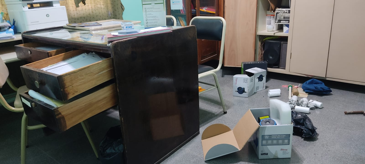 “Pensamos que querían llevarse los artículos de tecnología. Nos da mucha pena porque todo se sostiene con esfuerzo de nosotros. Nos da impotencia llegar y ver esto, nos llama la atención porque damos un servicio educativo y tenemos esta respuesta de malvivientes. Es la primera vez que se da algo de esta magnitud. Pero lamentablemente en el sector ya se habían dado hechos en el jardincito, el mes pasado ingresaron y se llevaron parlantes y en el secundario que tenemos de vecinos también”, relató.