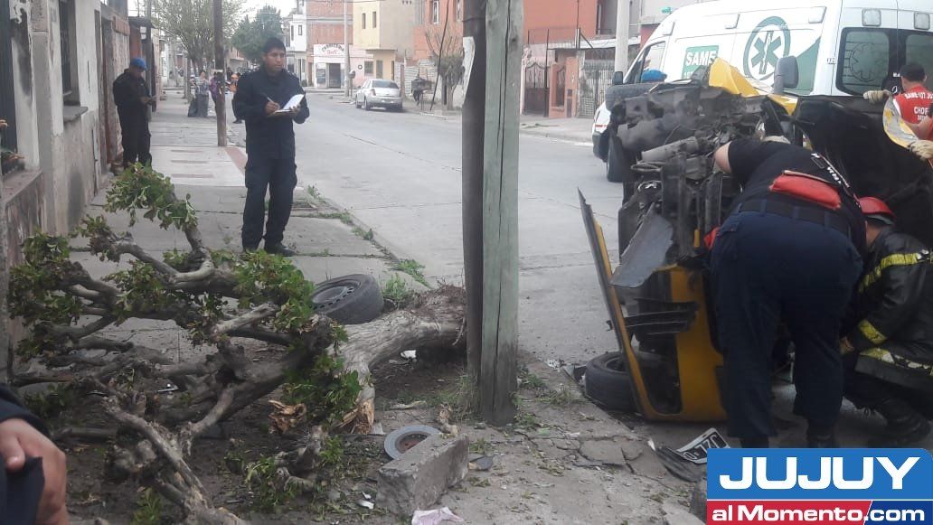 Un taxi volcó luego de chocar contra un poste y un árbol en la calle Carlos Gardel del barrio San Pedrito. Según indicó el oficial de tránsito que estaba emplazado en la escuela Mendizabal, el automóvil chocó contra un árbol, arrancándalo de raíz.