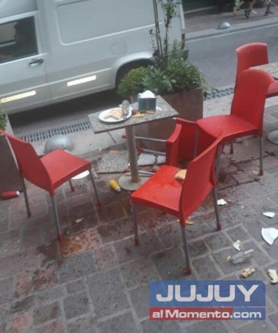 El viento le jugó una mala pasada a unas amigas que se sentaron a comer en la vereda de un local gastronómico de calle Belgrano, casi Lavalle.
