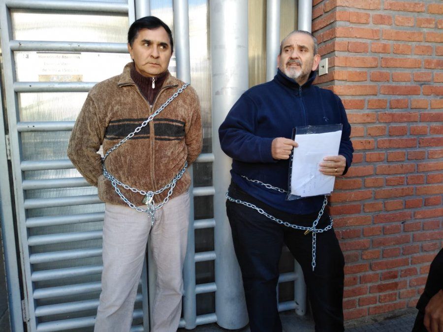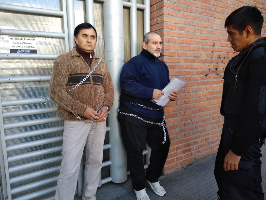 El presidente del directorio de Unión Bus, Rodolfo Severich y el secretario general, Antonio Godoy, se encadenaron en la sede de AFIP para reclamar el dinero de un juicio que la empresa le ganó al organismo por supuestas malas retenciones.