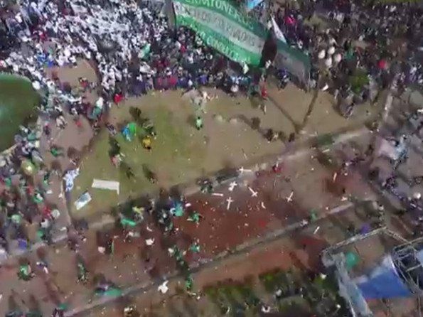 En la previa del inicio del acto central en Plaza de Mayo, hubo un enfrentamiento que involucró a un grupo de afiliados de Camioneros: volaron palos, botellazos y hasta las cruces en homenaje a los combatientes caídos en la guerra de Malvinas.