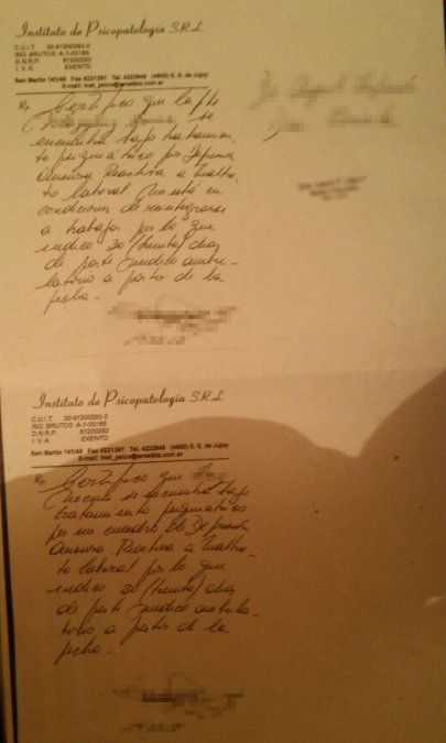 Prueba. El certificado (ilegible) que habría expedido la profesional, según la denuncia de las empleadas.