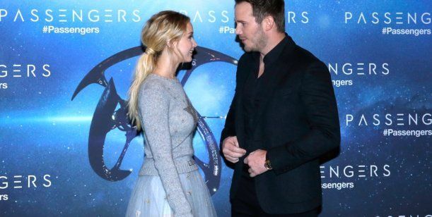 Para eso optó por una pollera de tul, con transparencias color azul hielo y una especie de sweater de hilo. Ambos prendas tenían estampado de estrellas, motivo que tiene que ver con el conflicto de la historia, que ella protagoniza junto a Chris Pratt: la historia relata el viaje de seres humanos hacia fuera de la Tierra, por medio de una nave espacial que termina teniendo un problema técnico. En consecuencia, los dos ocupantes, Preston (Pratt) y Lane (Lawrence), despiertan antes de lo programado y deberán lidiar con todo eso.