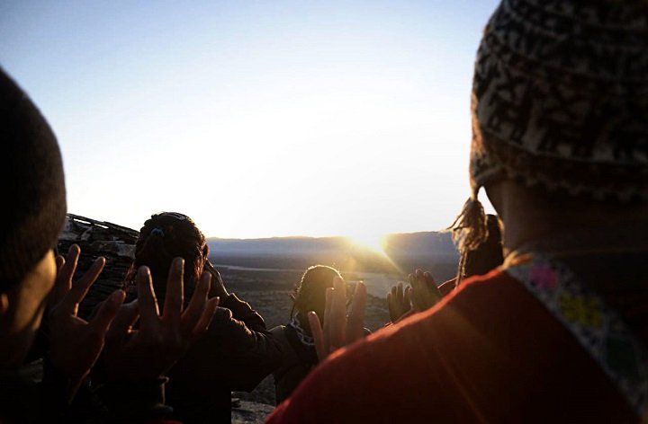 Allí los preparativos para recibir al año 5523, comenzaron anoche y los participantes desafiaron al frío (hizo varios grados bajo cero) para saludar al Inti en los primeros rayos de sol, antigua ceremonia que tenía lugar en el territorio andino y que reeditan ahora los descendientes.
