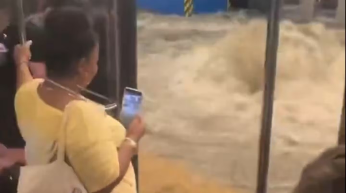 Impresionante inundación de un subte en Nueva York por fuertes lluvias