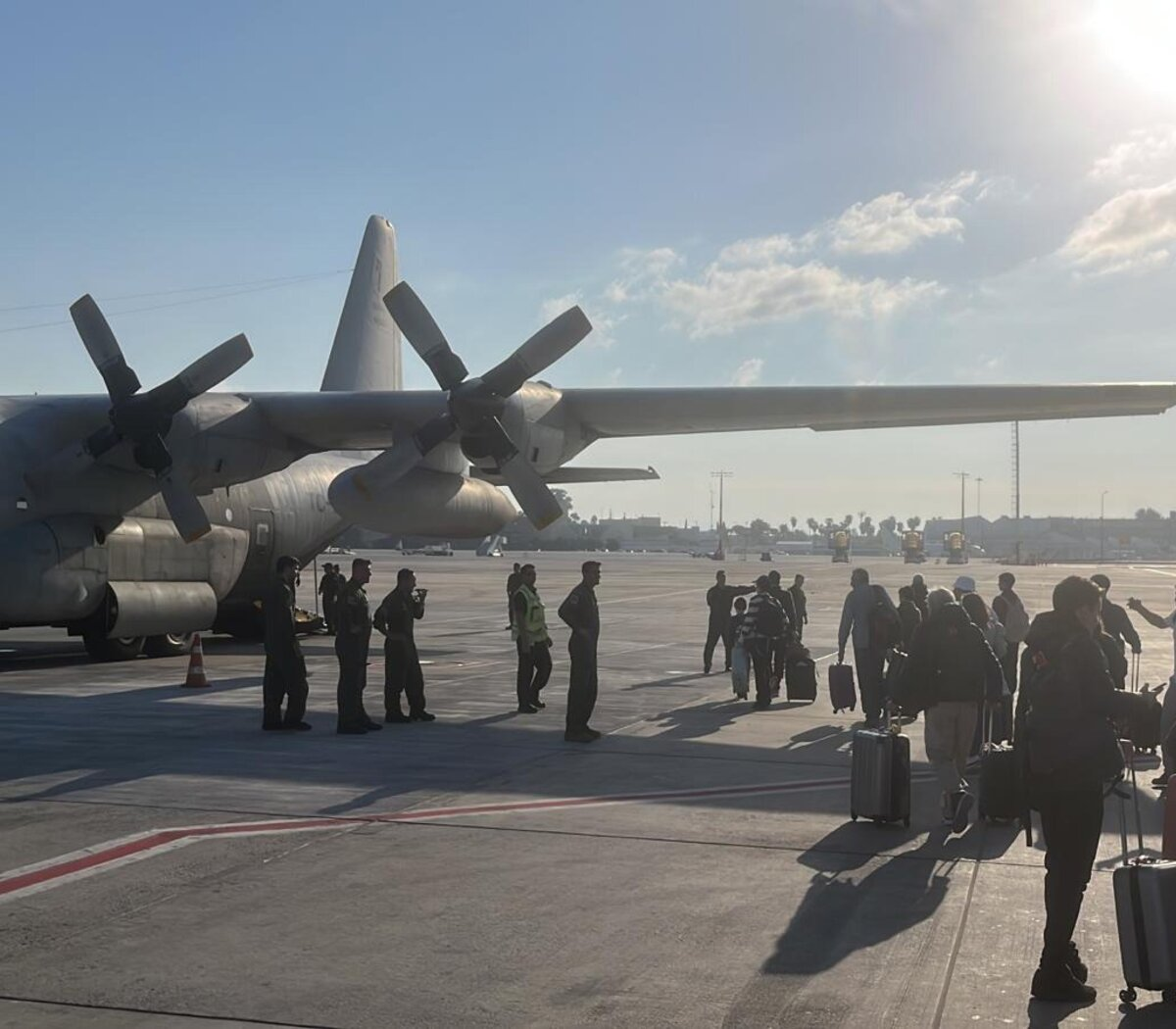Nelson Castro también explicó que el avión Hércules enviado desde la Argentina había llegado por la mañana para realizar su primer vuelo de repatriación de los ciudadanos argentinos que quedaron atrapados en el conflicto. En ese primer viaje, está previsto que un grupo sea trasladado hasta Roma, desde donde continuarán su viaje a nuestro país en un vuelo comercial de Aerolíneas Argentinas.