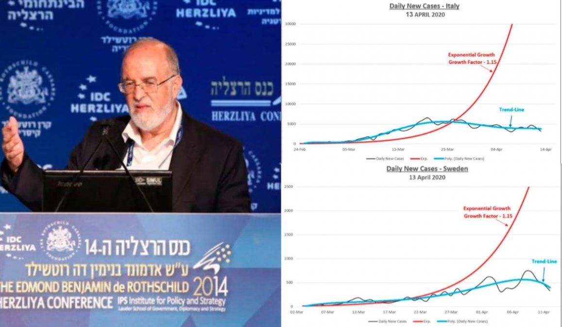 “Algunos pueden afirmar que la disminución del número de pacientes diarios es el resultado del estricto bloqueo impuesto por el gobierno y las autoridades sanitarias. El examen de los datos de diferentes países del mundo pone un fuerte signo de interrogación sobre esa afirmación (...) Resulta que el fenómeno es similar en todos los países en los que se descubrió la enfermedad, independientemente de sus políticas de respuesta: algunos impusieron un bloqueo severo e inmediato que incluía no sólo el ‘distanciamiento social’ y la prohibición del hacinamiento, sino también de la economía, como Israel; algunos ‘ignoraron’ la infección y llevaron una vida casi normal (como Taiwán, Corea del Sur o Suecia), y algunos adoptaron inicialmente una política indulgente pero pronto aplicaron un cierre completo (como Italia o el estado de Nueva York”.