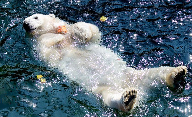 Pero debido a que las temperaturas en Roma se encuentran por arriba de los 40°, los cuidadores del zoo tuvieron que recurrir a otras medidas para mantenerlos frescos. Los cuidadores congelaron varios trozos de fruta en agua, haciendo una suerte de paletas dulces para que los animales pudieran alimentarse sanamente y refrescarse al mismo tiempo.