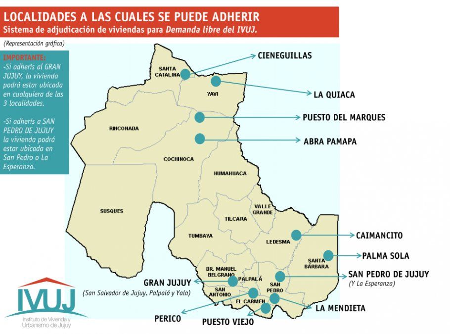 Entre las localidades en las cuales se podrá acceder al beneficio están Cieneguillas, La Quiaca, Puesto del Marqués, Abra Pampa, Caimancito, Palpa Sola, San Pedro (y La Esperanza), la Mendieta, Puesto Viejo, Perico y el Gran Jujuy (San Salvador, Palpalá y Yala).