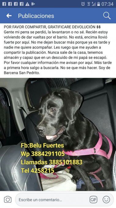 Quienes posean información o hayan visto a esta cachorra de color negro que portaba una pechera rosada pueden comunicarse al 3884291105.