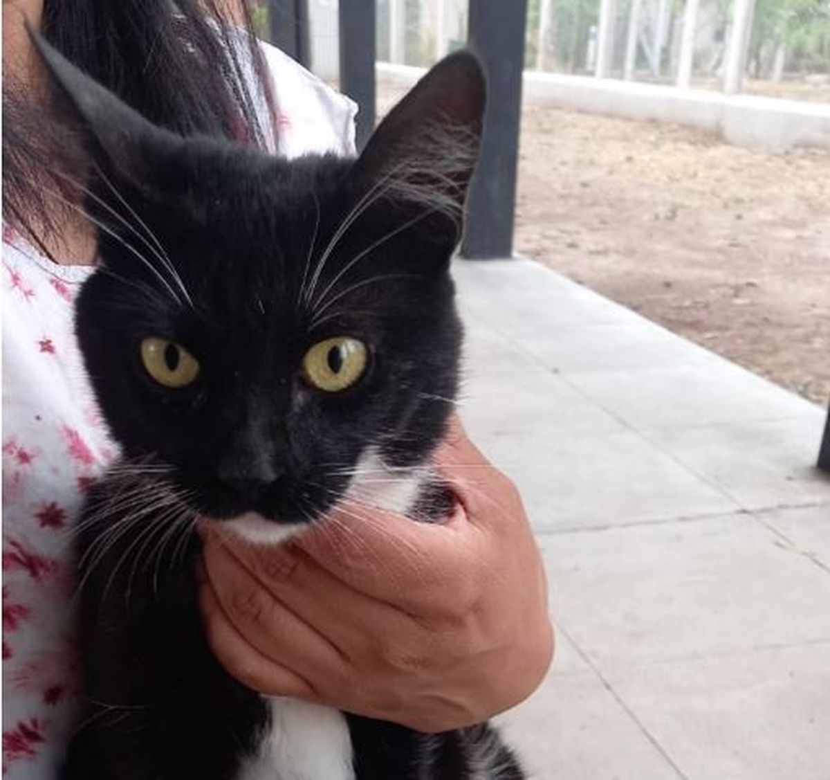 "Mili" es el nombre de una gata que se refugia en una escuela de El Carmen. La felina, de pelaje negro y blanco, espera que una familia se apiade de ella y la adopte.
