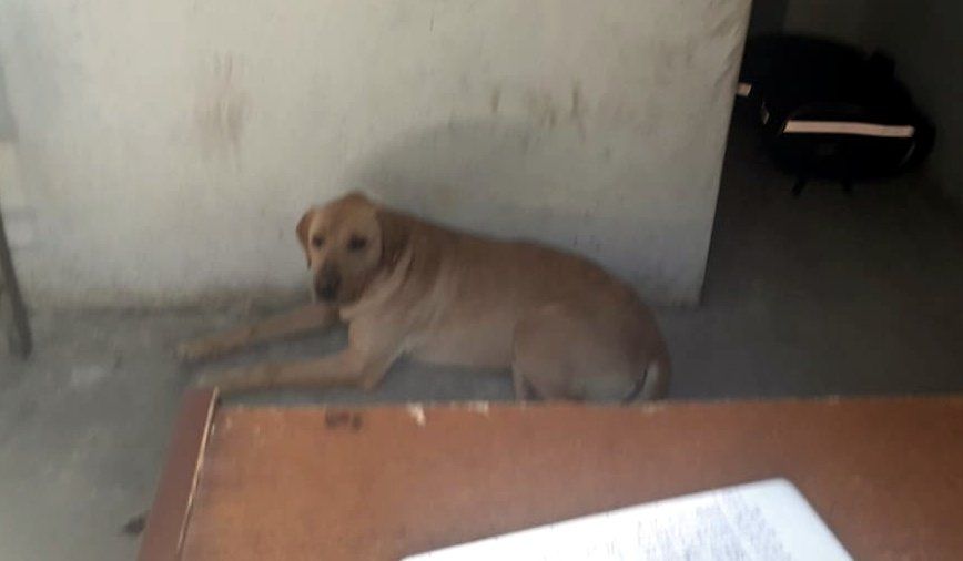 El canino, cruza de Labrador, tiene una lesión en la cola y una protuberancia en la cabeza.