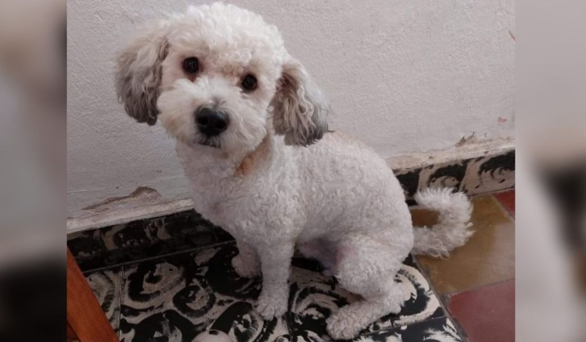 El animal es de raza caniche, de pelaje color blanco con las puntas de las orejas grises. Su familia ofrece $35.000 de recompensa a quién lo encuentre.