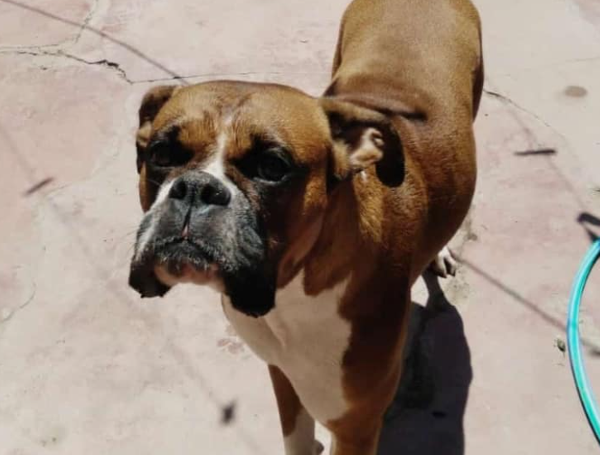 El domingo 17 de este mes se extravió la perra Rufina. Su familia la busca intensamente y ofrece recompensa a quien aporte datos fidedignos sobre el paradero de la peludita. La perra es de raza Bóxer, pelaje color canela, porte grande.
