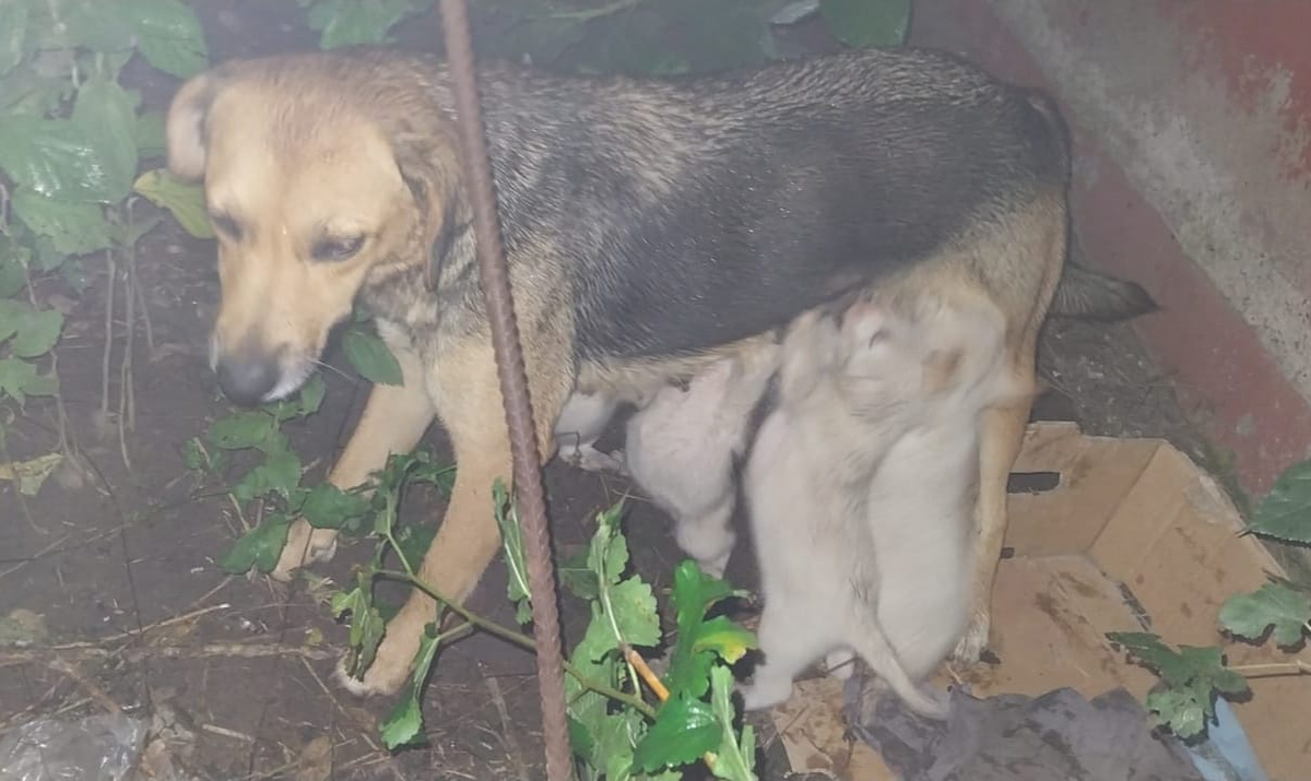 - Una perra y sus cachorros fueron abandonados en la calle.