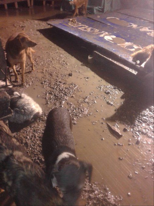 Anoche el temporal les jugó una mala pasada y mantuvo en vilo a los perros que allí se alojan que por el barro no tuvieron donde dormir.