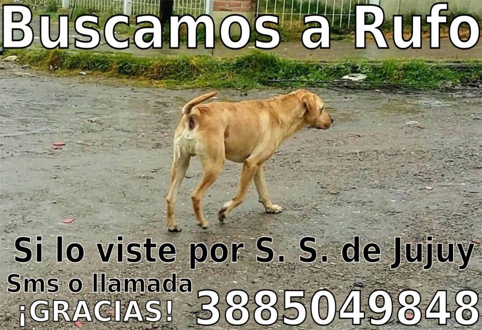 Rufo es un perrito "ladrador" de tan solo 9 meses color canela, se extravió por el Centro vecinal Azopardo. Los dueños lo buscan y piden a aquellos que lo vean comunicarse por sms o llamadas al 3885049848.