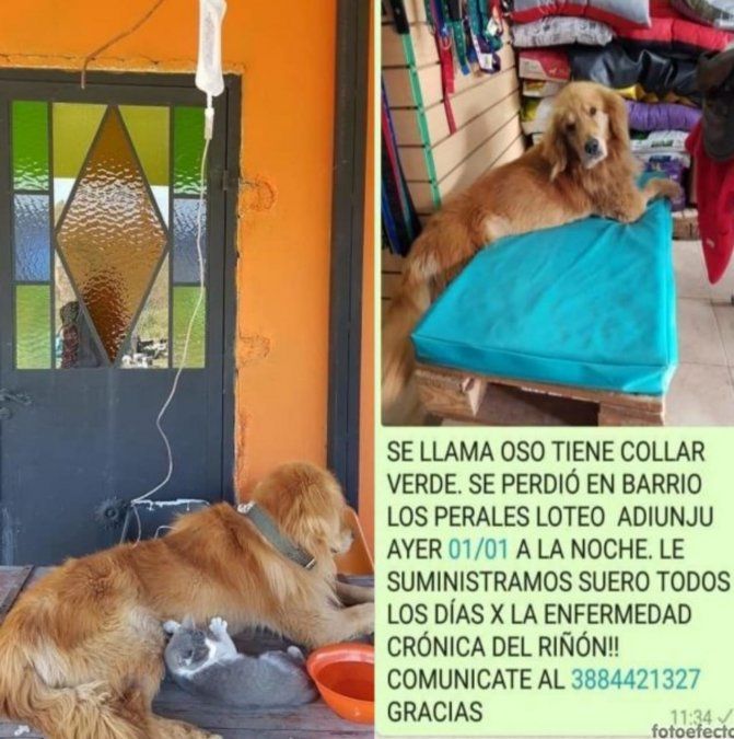 Se trata de un Golden Retriever que se perdió en el barrio Los Perales el 1 de enero. Llevaba un collar verde; tiene una enfermedad crónica renal por lo necesita ser encontrado para recibir su medicación.