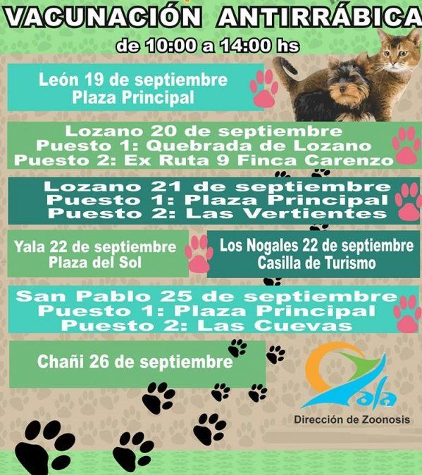 Por otra parte, en la localidad de Yala tendrá lugar una campaña de vacunación antirrábica los siguientes días: