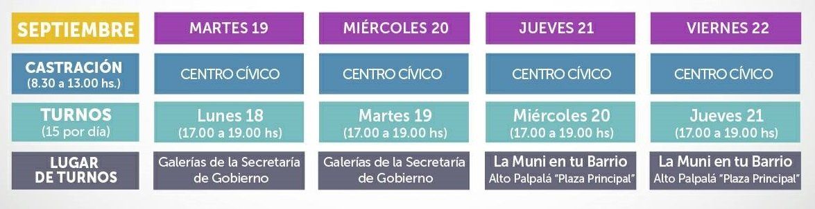 Como ya es costumbre en Palpalá, se programó una nueva semana para la castración de mascotas. El cronograma quedó establecido de la siguiente manera: