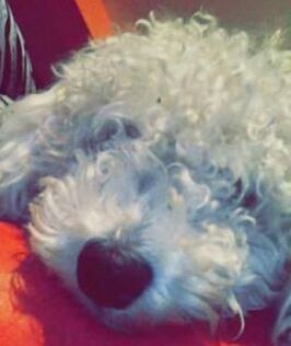 Lola es blanca, con nariz negra y tiene rulos. Al momento de su desaparición tenía un collar verde manzana y se encontraba junto a otro perrito.