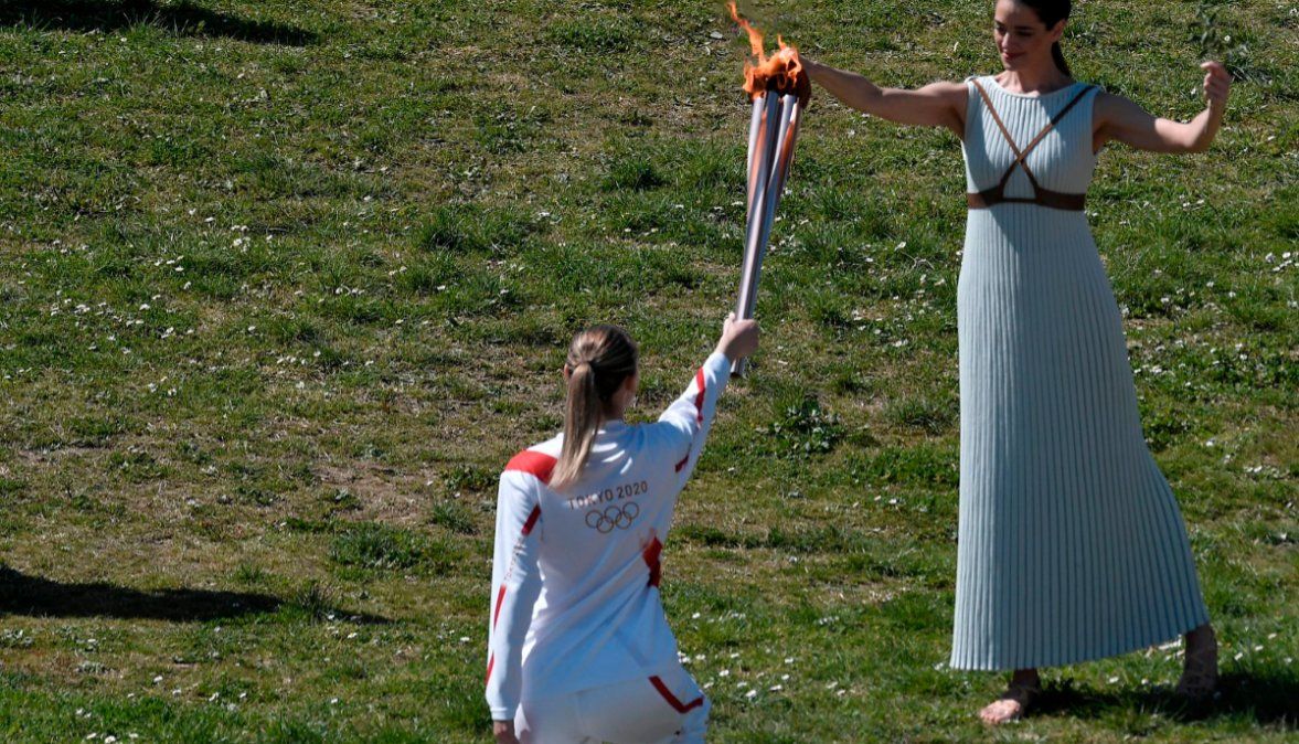 En medio de la incertidumbre, la llama olímpica se encendió en las ruinas de Olimpia, en la tradicional ceremonia que entrega la antorcha al primer portador, que inicia el recorrido por tierras griegas hasta su entrega al país anfitrión, Japón. Por primera vez en la historia la primera portadora fue una mujer, la tiradora Anna Korakaki.