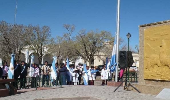 Los festejos cívicos dieron inicio con un responso rezado en el templo local, a lo que siguió el izamiento de la Enseña Nacional y de la Bandera Civil, en los mástiles ubicados en la plaza central. Seguidamente la concurrencia entonó las estrofas del Himno Nacional Argentino, acompañada por la Banda de Música del RIMec20.