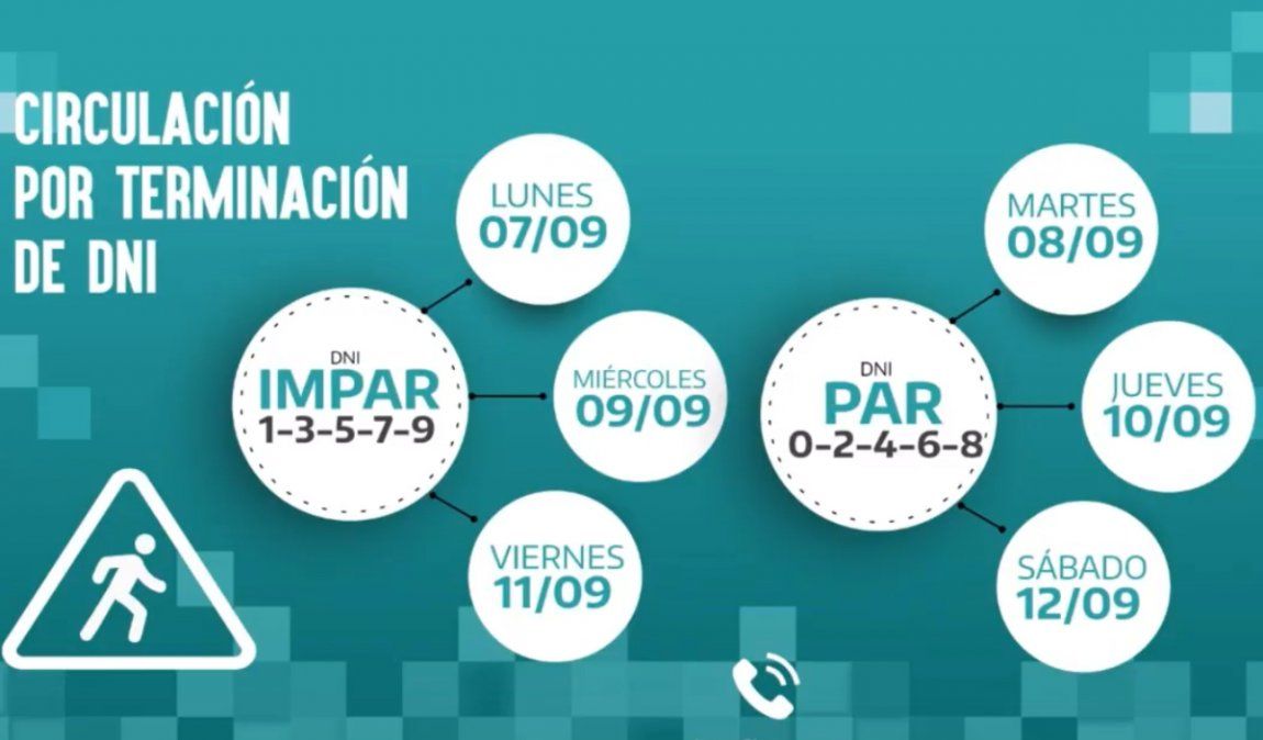 Continuando con el esquema de circulación por terminación de DNI par e impar para realizar actividades esenciales, esta semana se dispuso lo siguiente: