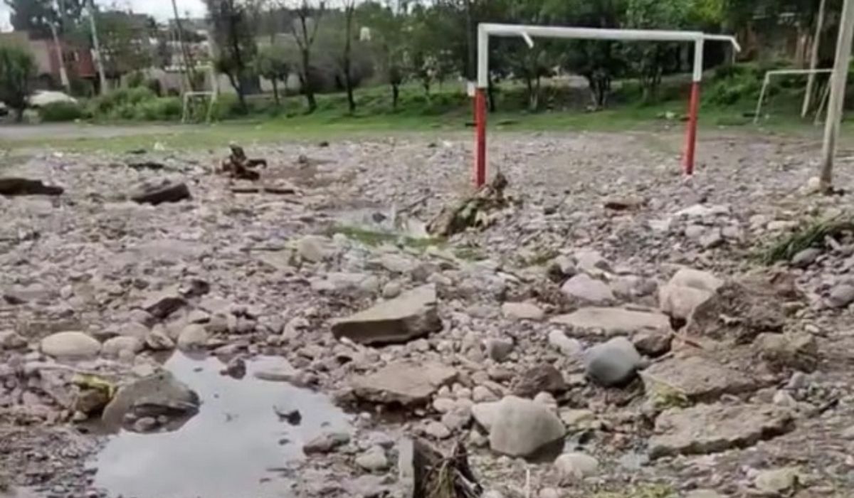 Cabe recordar que los vecinos del sector explicaron que el agua viene de Arroyo Las Martas, toma avenida Carahuasi y termina en El Milagro, que es como un pozo. La cancha de El Milagro, ubicada en el sector B1 de Alto Comedero, sufrió serias consecuencias tras la tormenta que se desató en la noche del jueves 11 de enero.