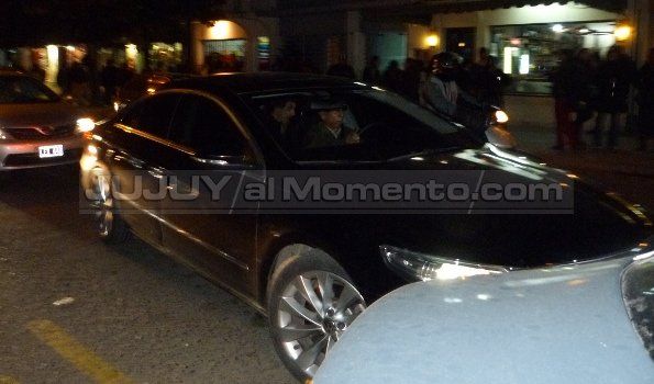 Un grupo minúsculo de personas que estaban allí se abalanzaron contra el vehículo, mientras numerosos reporteros gráficos tomaban imágenes. Este hecho, hizo que el conductor desistiera de ingresar al garaje del edificio y saliera raudamente por calle Senador Pérez y Alvear donde nuevamente fue increpado por los manifestantes, para luego seguir por calle Güemes.