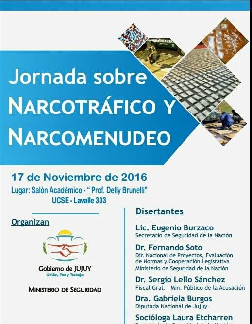 Este jueves se llevará a cabo la Jornada de Narcotráfico y Narcomenudeo en Jujuy con la presencia y disertación del secretario de Seguridad de la Nación, Eugenio Burzaco. El evento se desarrollará en el Salón Académico “Prof. Delly Brunelli” de la Universidad Católica de Santiago del Estero, a partir de las 10 horas.