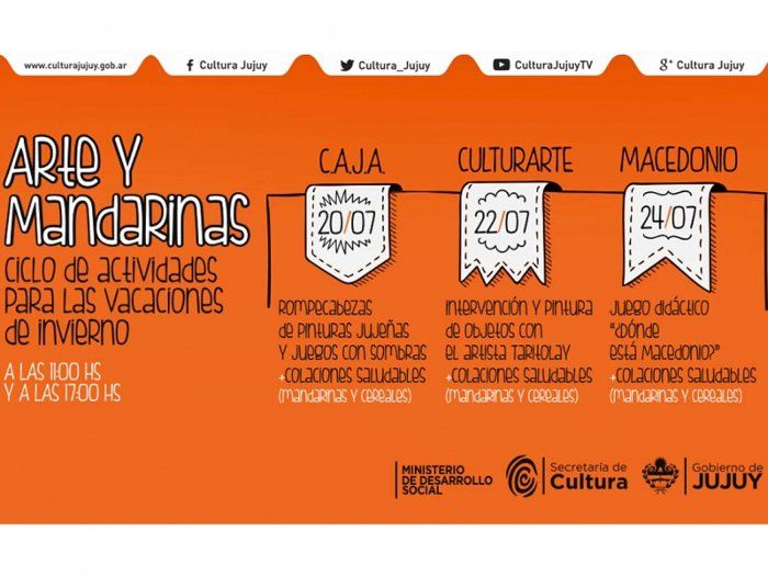 La Dirección de Seguridad Alimentaria del Ministerio de Desarrollo Social participa del ciclo “Arte y Mandarinas” organizado por la Secretaría de Cultura, a los fines de difundir valores culturales, recreativos, reflexivos y formativos. Las presentaciones se realizarán durante la segunda semana de las vacaciones de invierno, en los espacios dependientes de Cultura.