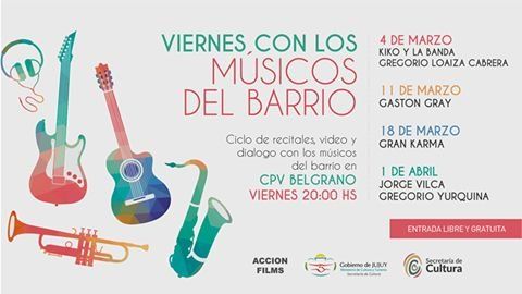 Este viernes comenzará el ciclo “Viernes con los músicos del barrio”, que se extenderá hasta el 1 de abril en el CPV de barrio Belgrano a partir de las 20.00, con entrada libre y gratuita.