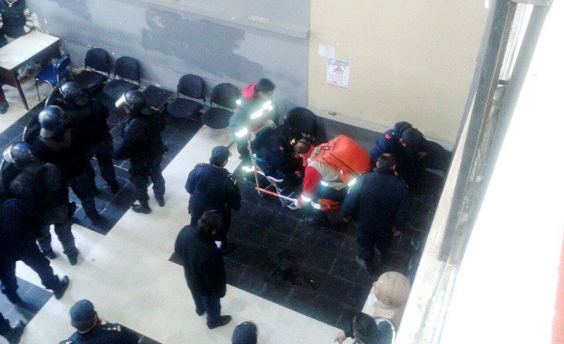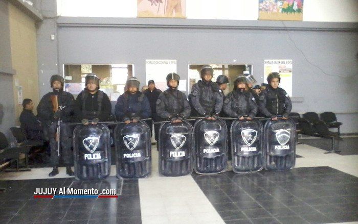 Cinco policías que custodiaban el lugar (dos mujeres y tres hombre) resultaron heridos y fueron trasladados al Hospital Pablo Soria. Se trata de una mujer que ingresó poco tiempo atrás a la fuerza y que cayó al suelo donde habría recibido patadas en la cabeza. El otro internado es un cabo que acudió en su ayuda y habría recibido golpes con palos según los trascendidos.