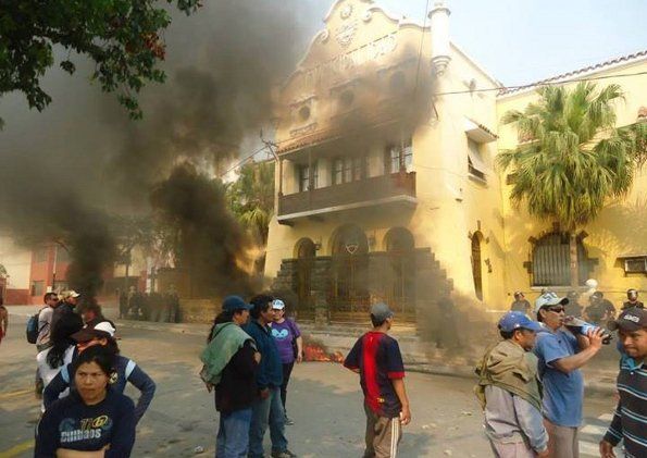 A primeras horas de la mañana, se realizó la asamblea de los municipales sampedreños, quienes decidieron movilizar a partir de las 8.30, luego de cerrar las puertas de la municipalidad. La mayoría de las reparticiones de la comuna marcharon hacia la plaza, donde los estaba esperando un grupo de efectivos policiales, armados con palos y armas con balas de goma.