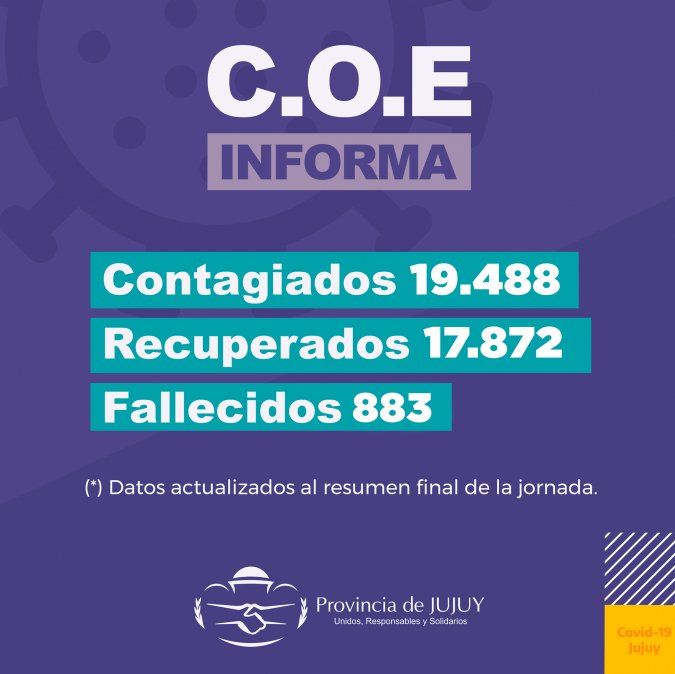En la jornada de hoy recibieron el alta 14 personas y en total se recuperaron de la enfermedad 17.872 jujeños.