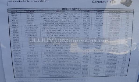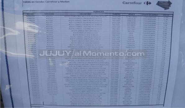 La lista debía exhibirse a la vista de todos los consumidores en los supermercados jujeños, se había acordado mantener la provisión normal de los productos y, desde luego, respetar los precios establecidos.