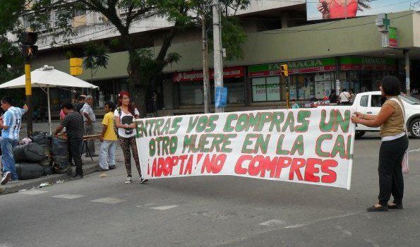 “Estamos en protesta en contra del “vende perros” que esta siempre ubicado en la esquina de 19 de Abril y Lavalle. Nosotros traemos a los cachorritos para entregarlos en adopción, mientras él los tiene a la venta, sin agua, sin comida, enfermos y desnutridos”.