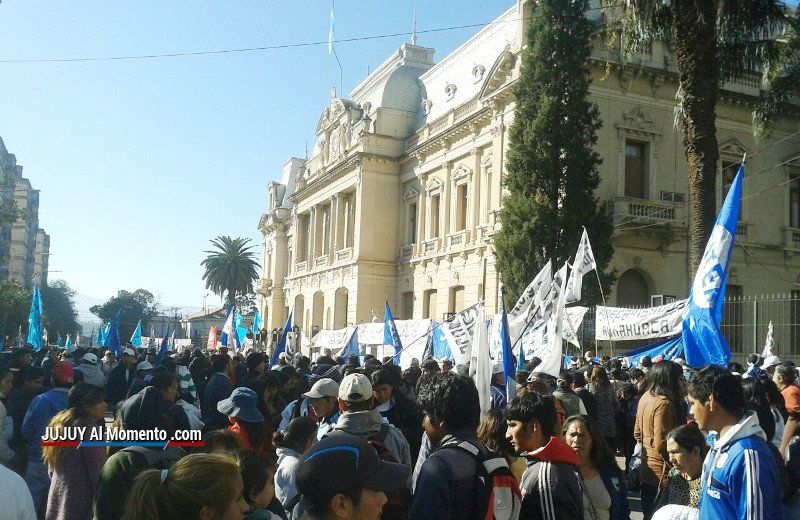 El Frente de Gremios Estatales marchó esta mañana por las calles céntricas de la ciudad. Alrededor de las 11 la columna llegó a Casa de Gobierno, en rechazo de las paritarias del 27% y ley del 82% móvil.