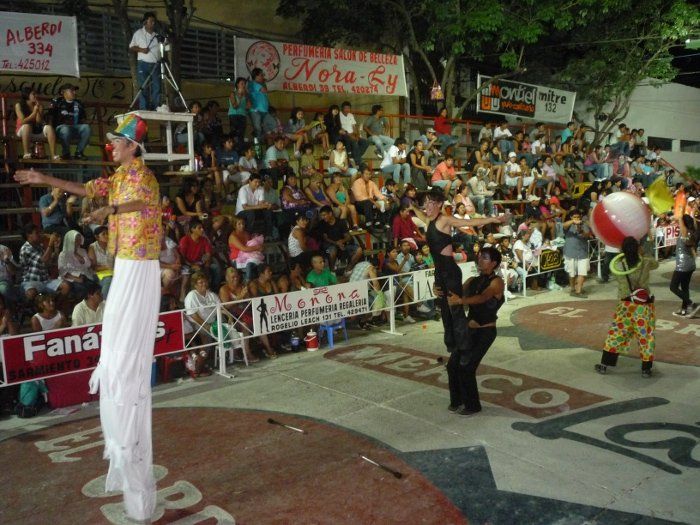 Gallego, saludo a todos desde el palco oficial, ubicado sobre calle Sarmiento a todos los espectadores, también bajo de la carroza para bailar y saludar a todos presentes.
