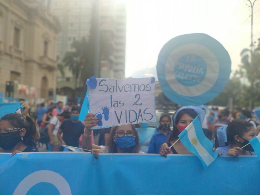 En la previa a la maratónica sesión, en Jujuy grupos y activistas a favor de “las dos vidas” decidieron marchar para expresar su postura en contra.