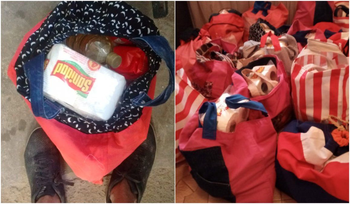 Entre los productos de primera necesidad incorporados en las bolsas ecológicas confeccionadas, figuran la adquisición de: aceite, yerba, fideos, arroz, azúcar, harina, te, leche, tomate, papel y otros productos.
